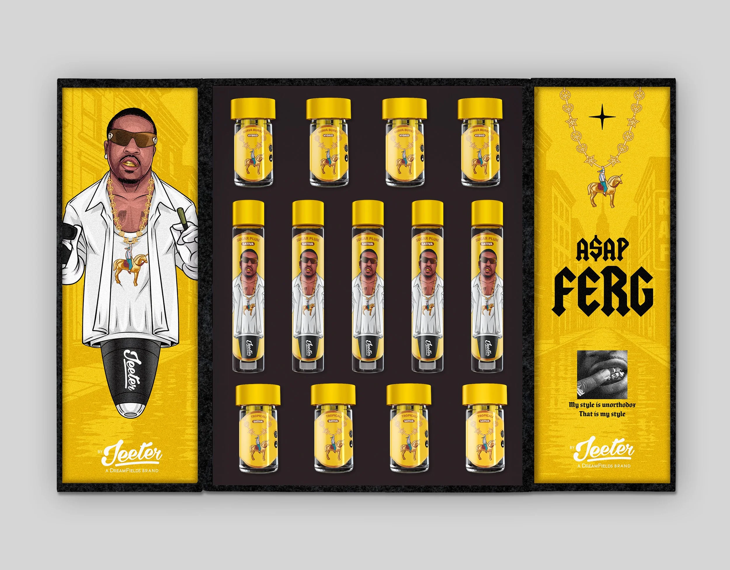 In collaboration with ASAP Ferg's management team, we created a limited -edition Jeeter gift box and poster insert.